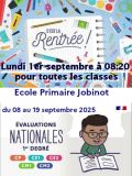 Rentrée le 1er septembre pour tous et évaluations pour l'élémentaire dès le 08 septembre